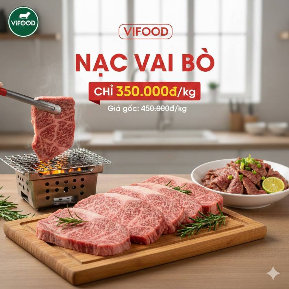 | Nạc vai bò | Bò tươi | Cắt theo yêu cầu | 350.000 - 450.000 |