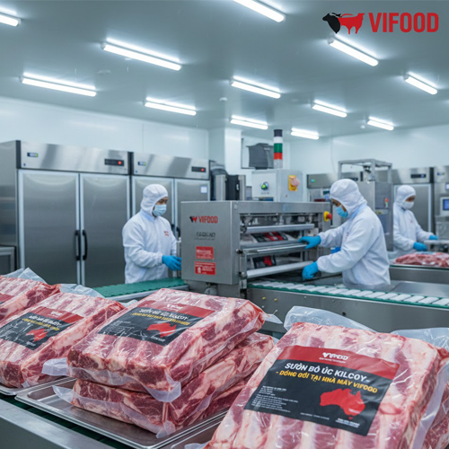 VIFOOD chuyên phân phối sườn bò Úc Kilcoy giá sỉ, hàng nhập khẩu chính ngạch, bảo quản đông lạnh -18°C, nguồn hàng ổn định quanh năm.